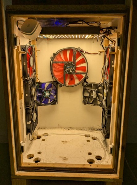 Herr Manz setzte sich intensiv mit den Wachstumsfaktoren von Pflanzen auseinander und analysierte die limitierenden Einflüsse der verschiedenen Parameter. Aufbauend auf diesen Erkenntnissen entwickelte er einen detaillierten Plan für den Bau einer smarten Growbox. Die Box fertigte er aus wiederverwerteten Materialien und stattete sie mit aktiver Belüftung, automatisierter Beleuchtung sowie einem Aktivkohlefilter aus. Für die Steuerung programmierte er die Anbindung aller erforderlichen Sensoren und führte schließlich einen Wachstumsversuch mit der Pflanze „Critical Kush“ durch.