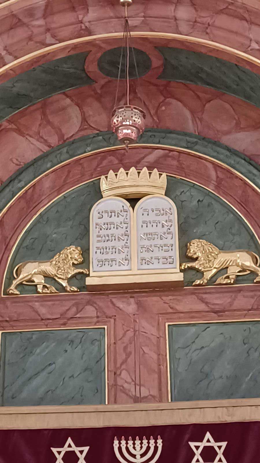 An der Außenmauer der Synagoge (im Innenhof) befindet sich der Hochzeitsstein (Chuppa): das Brautpaar warf nach der Trauung ein Glas gegen die Chuppa – dies sollte symbolisieren, dass das Glück so zerbrechlich wie Glas ist.