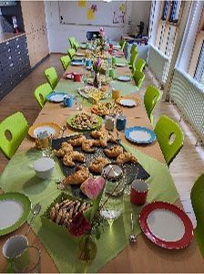 Zuerst haben wir Marienkäfer gebastelt, die man als Blumenstecker oder Dekoration verwenden kann. Diese kleinen Tiere passen super zum Frühling und unsere Besucher durften sie aus rotem und schwarzem Tonpapier gestalten. Wir waren überrascht, wie schnell diese gebastelt waren und welche tollen Ergebnisse heraus-gekommen sind. Danach ging es in die Küche, wo wir zusammen einige leckere Sachen gebacken haben. Es gab Croissants mit einer Gemüsefüllung, die echt gut geschmeckt haben und Mandarinen-Muffins, die richtig frisch und fruchtig waren. Hafer-Cookies und Cookies mit Schokostückchen komplettierten unser Speisenangebot. Alle haben fleißig mitgeholfen und es hat richtig Spaß gemacht, zusammen zu backen. Als alles fertig war, haben wir uns zusammengesetzt und die selbstgemachten Leckereien genossen. Das gemeinsame Essen war auf jeden Fall ein Highlight des Tages. Am Ende des Projekts haben wir uns alle noch einmal zusammengesetzt, um über den Tag zu sprechen. Alle waren glücklich und voller positiver Eindrücke. Es war wirklich toll, zusammen so viele kreative Sachen zu machen und neue Personen kennenzulernen. Alles in allem war unser Samstagsprojekt am BSZ Ansbach für uns riesiger Erfolg. Wir haben nicht nur viel über die Projektplanung – und durchführung gelernt, sondern auch tolle Kinder und Jugendliche getroffen und eine Menge Spaß miteinander gehabt. Es bleibt ein unvergesslicher Tag! Text: Schülerinnen/Schüler, S 11 II Bilder: S. Ehrmann (FOLin)