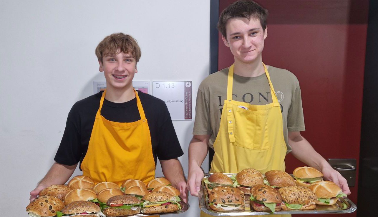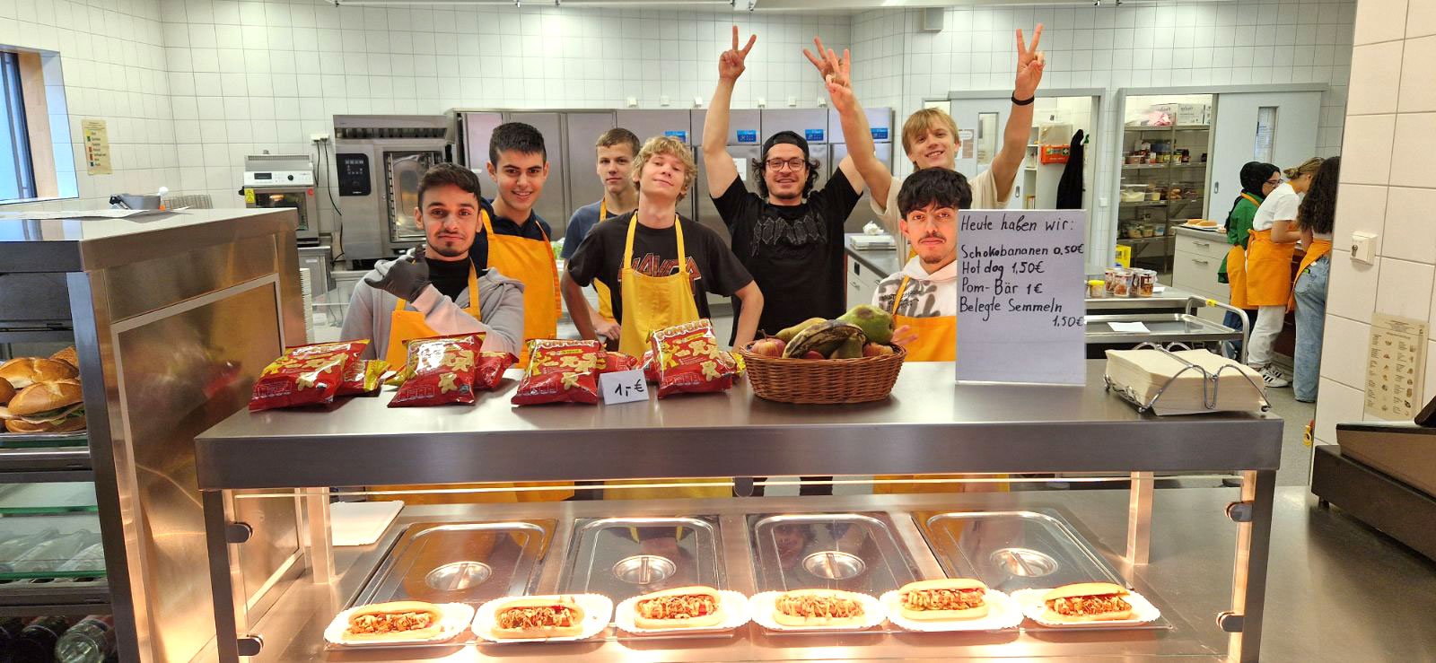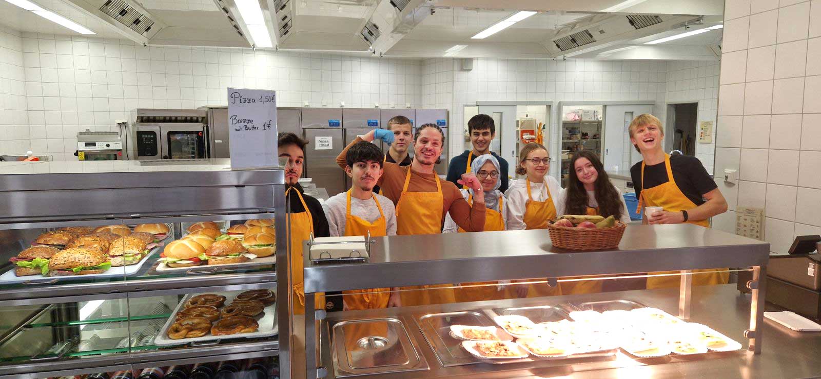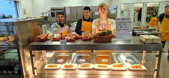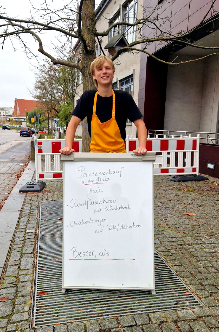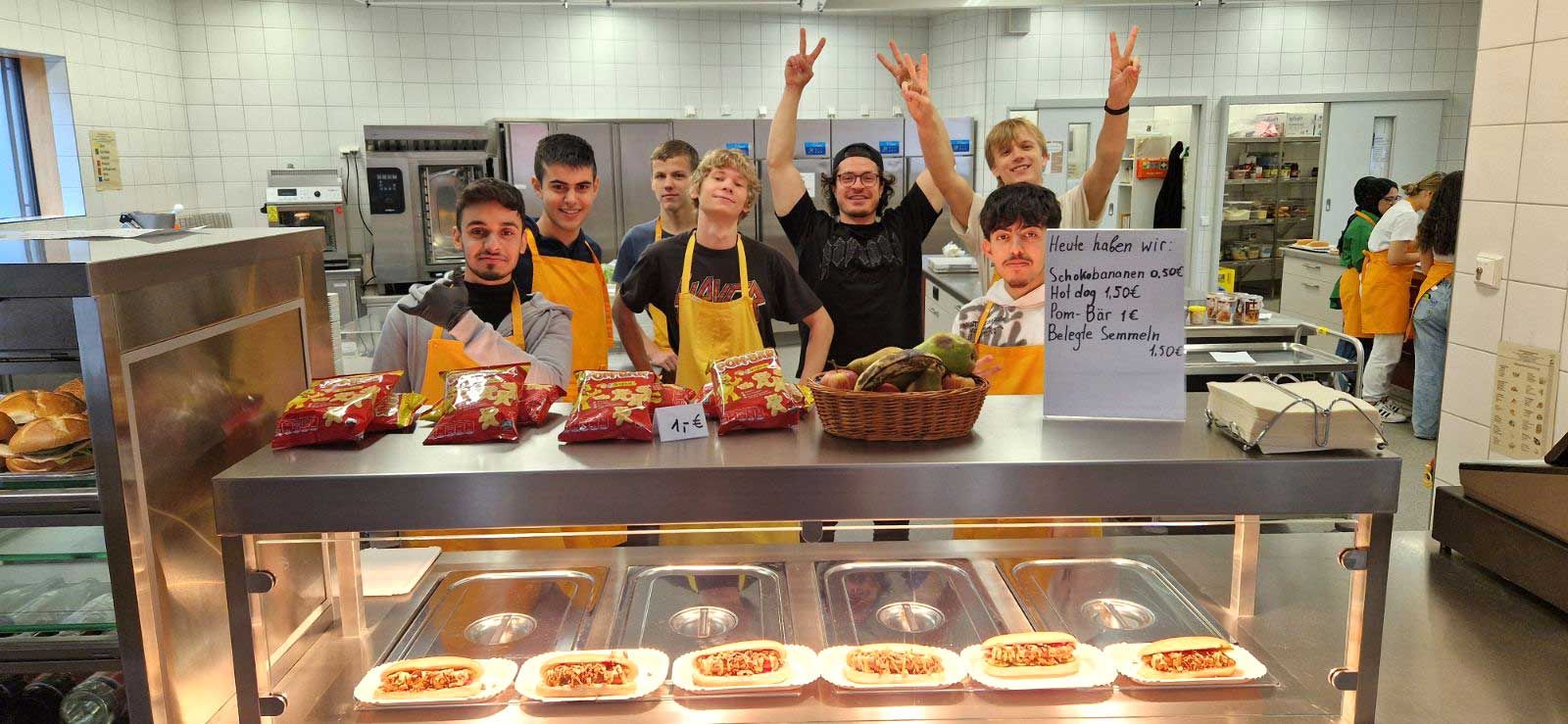 Mit großer Begeisterung organisiert die Klasse BIKa zusammen mit ihrer Lehrkraft, Frau Weiss, freitags den Pausenverkauf. Dass den Schülerinnen und Schülern die Aufgabe viel Spaß macht, kann man auf den Fotos sehen. Mit viel Engagement und Freude bereitet die Gruppe 1 in den ersten beiden Stunden die Speisen (z. B. Döner, Hot Dogs, belegte Semmeln und vieles mehr) zu. Die Gruppe 2 kümmert sich dann um den Verkauf in der Pause. Zur großen Freude ist meistens alles restlos ausverkauft!