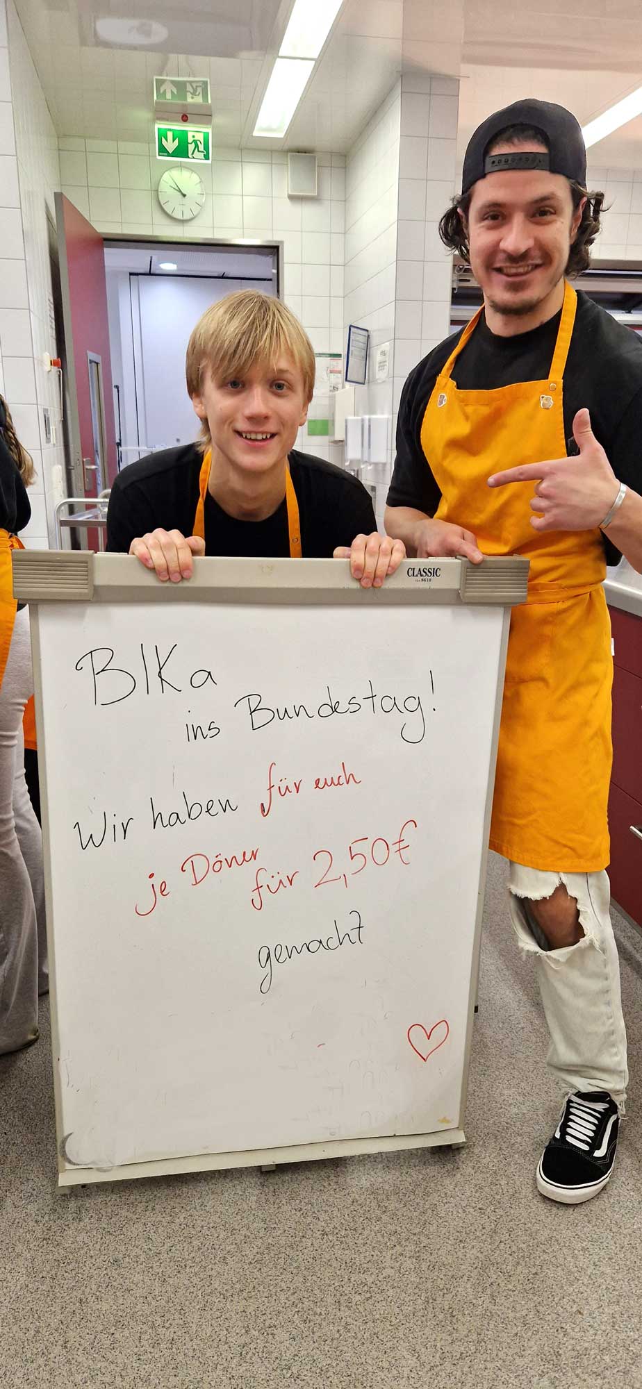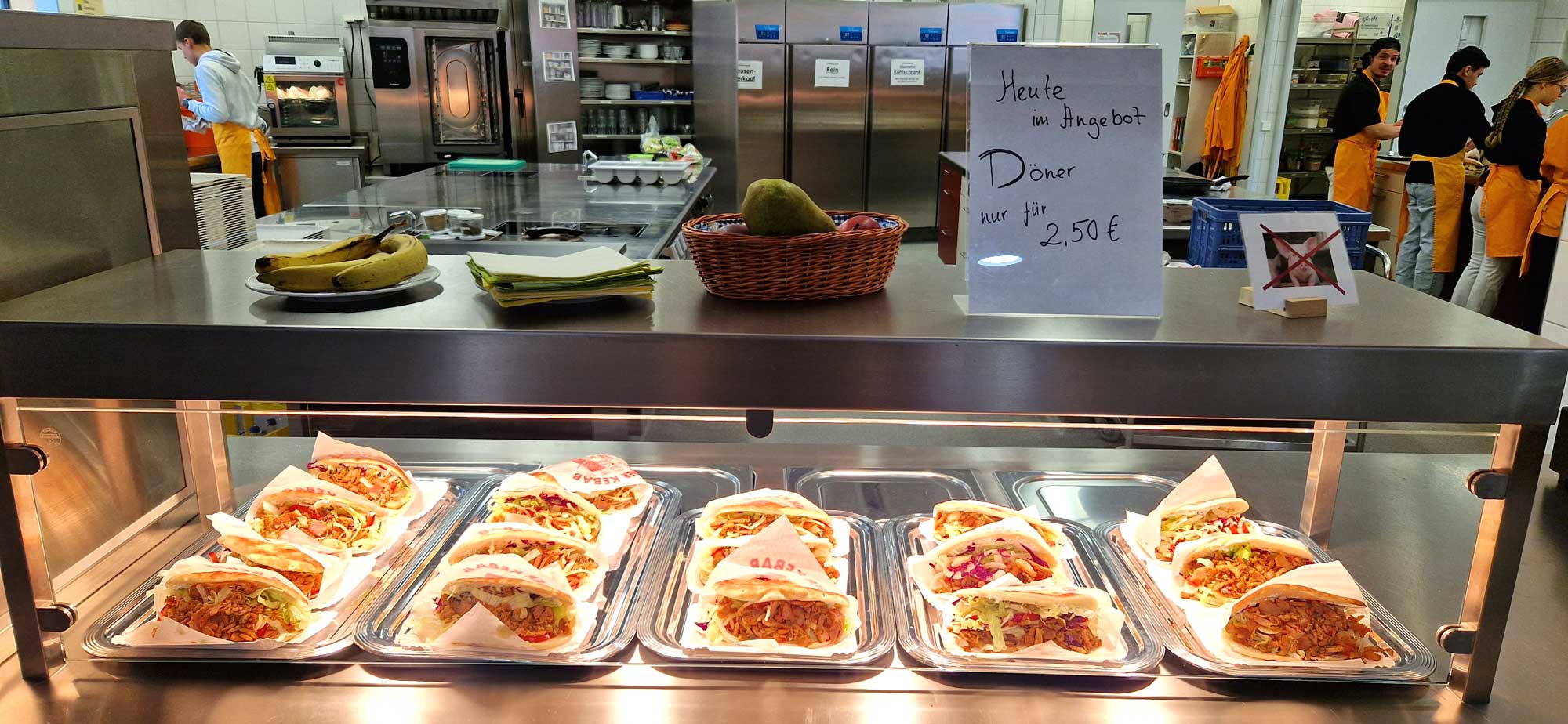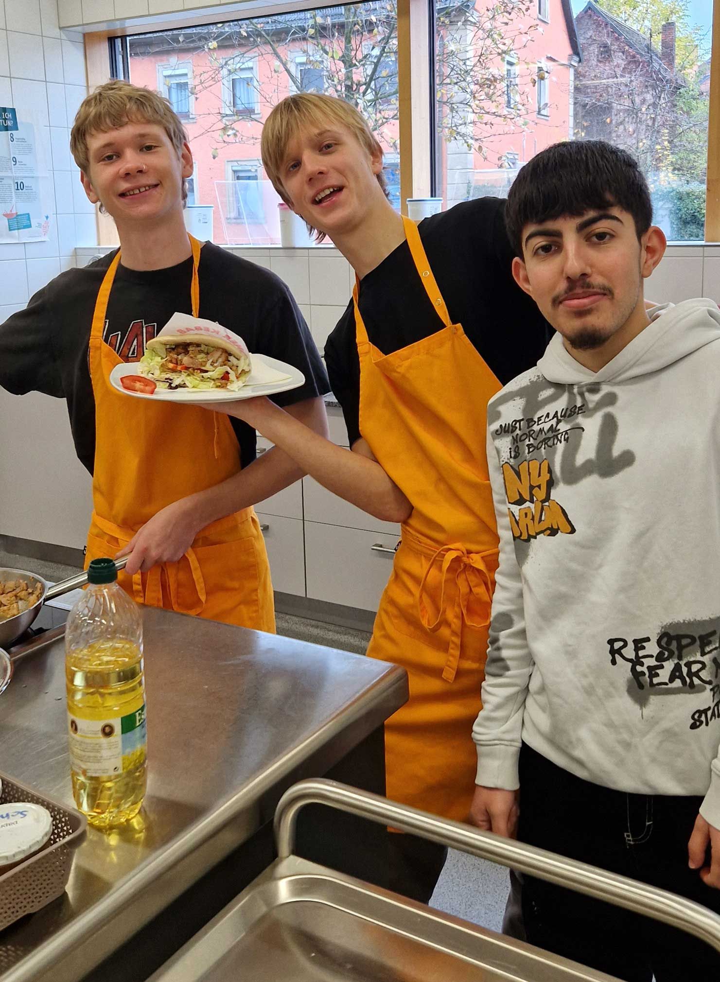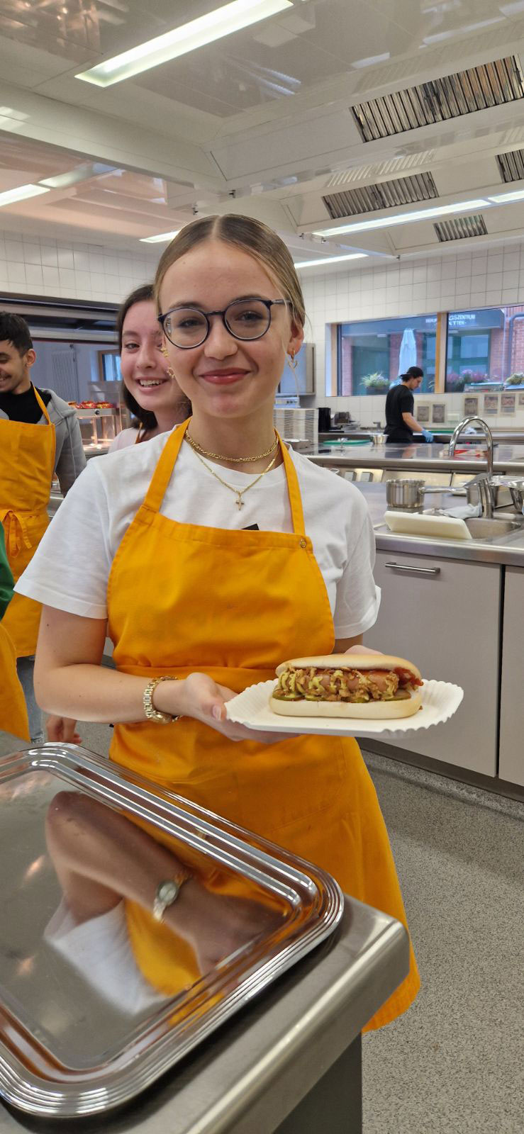 Mit großer Begeisterung organisiert die Klasse BIKa zusammen mit ihrer Lehrkraft, Frau Weiss, freitags den Pausenverkauf. Dass den Schülerinnen und Schülern die Aufgabe viel Spaß macht, kann man auf den Fotos sehen. Mit viel Engagement und Freude bereitet die Gruppe 1 in den ersten beiden Stunden die Speisen (z. B. Döner, Hot Dogs, belegte Semmeln und vieles mehr) zu. Die Gruppe 2 kümmert sich dann um den Verkauf in der Pause. Zur großen Freude ist meistens alles restlos ausverkauft!