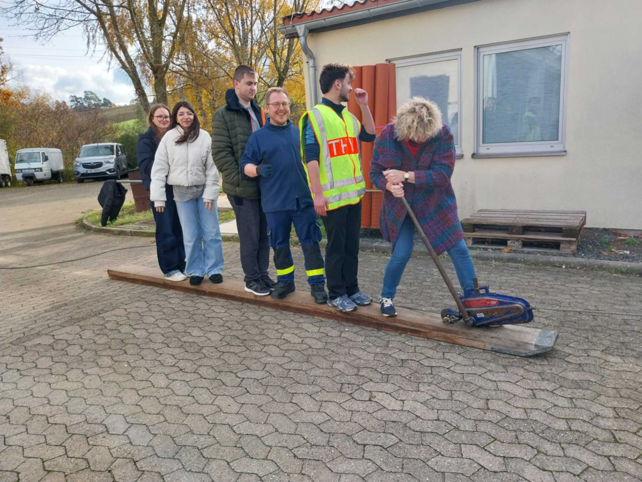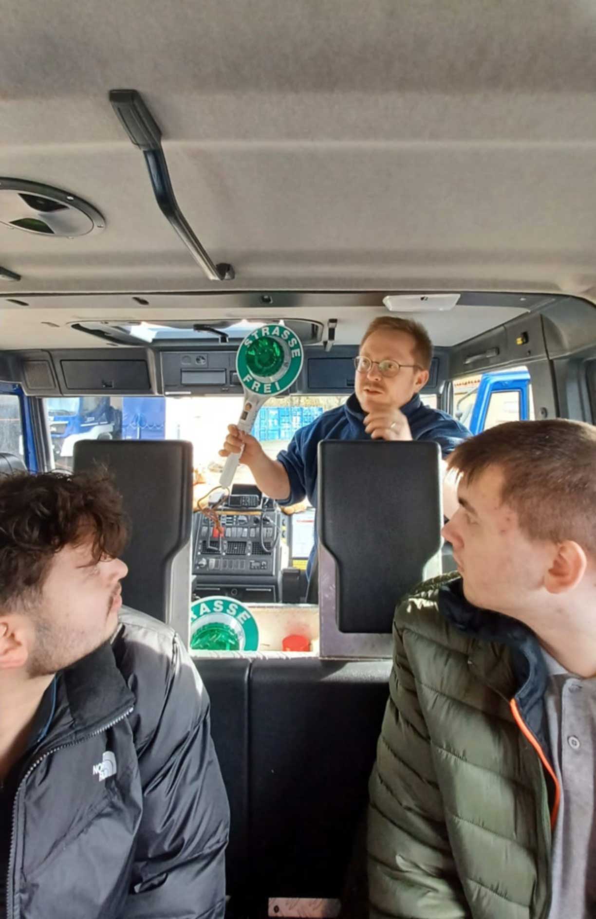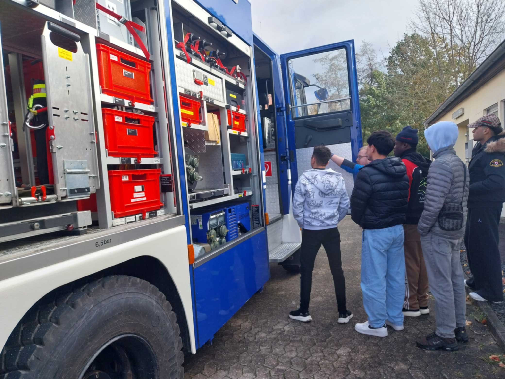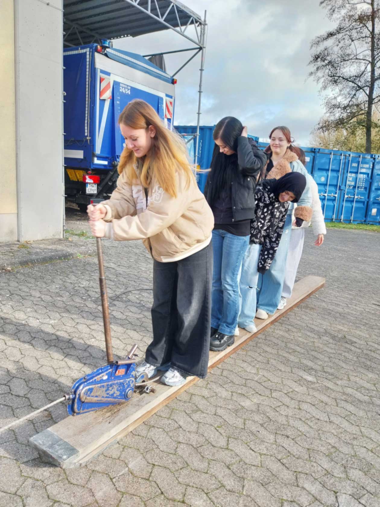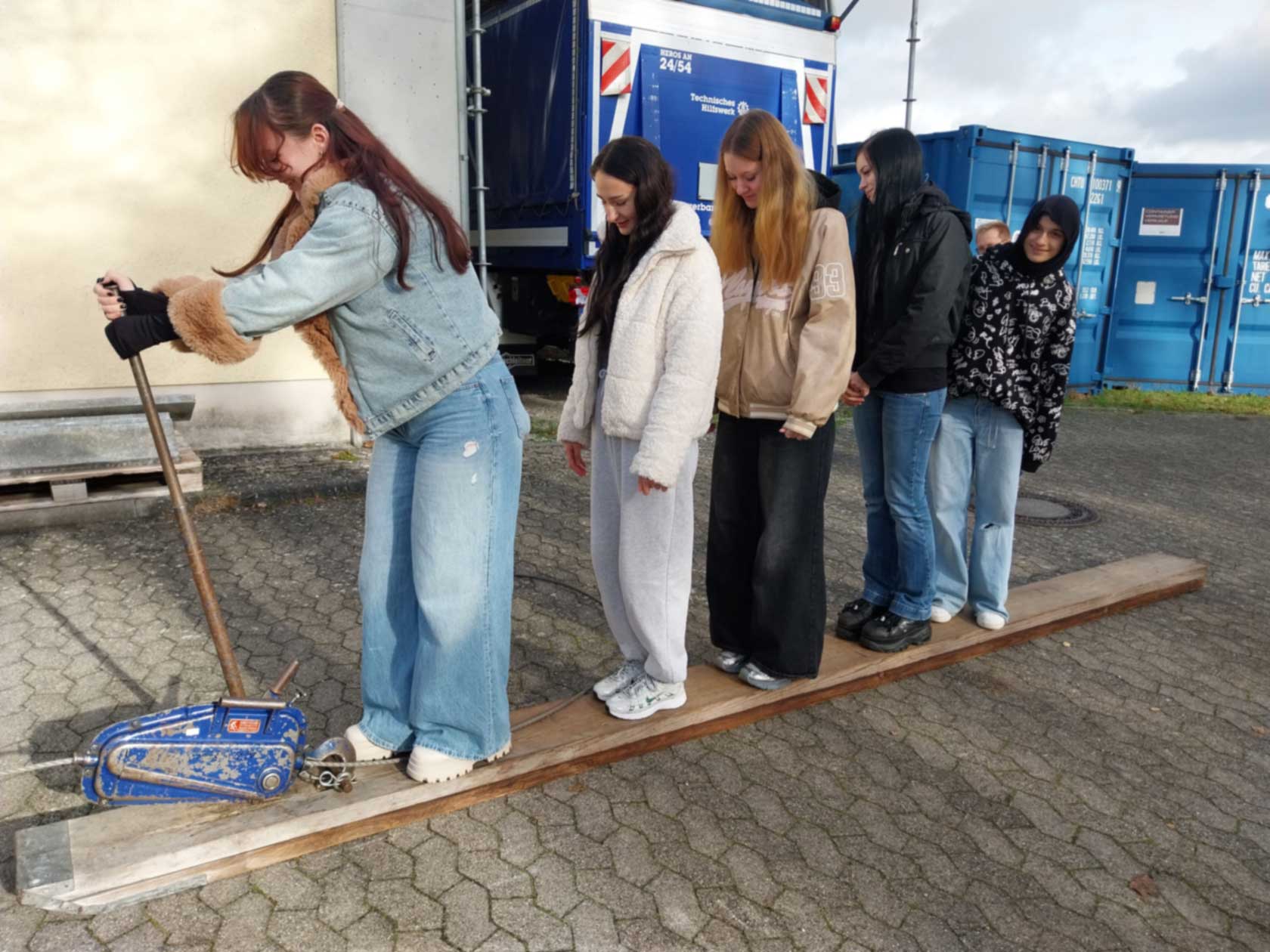 Im Rahmen unseres Projekts zum Ehrenamt unternahmen die Klassen BIKa und BIKc einen Unterrichtsgang zum Technischen Hilfswerk (THW) in Ansbach. Am 28. Oktober 2025 (BIKa) bzw. am 11. November 2025 (BIKc) gingen die Klassen gemeinsam mit ihren Lehrkräften, Inge Bühler-Saal und Claudia Geißler-Kraft, von der Schule aus zu Fuß nach Eyb zum THW. Dort erwarteten uns bereits drei ehrenamtliche Helfer des THW: Jugendbetreuer Tobias Wißmüller, Fachberater Georg Schuster und Verwaltungshelfer Tom Groß. Tobias Wißmüller hatte sich extra Urlaub genommen, um uns betreuen zu können. Nach einem kurzen Einführungsfilm teilte Tobias Wißmüller die Klassen jeweils in 3 Gruppen ein.