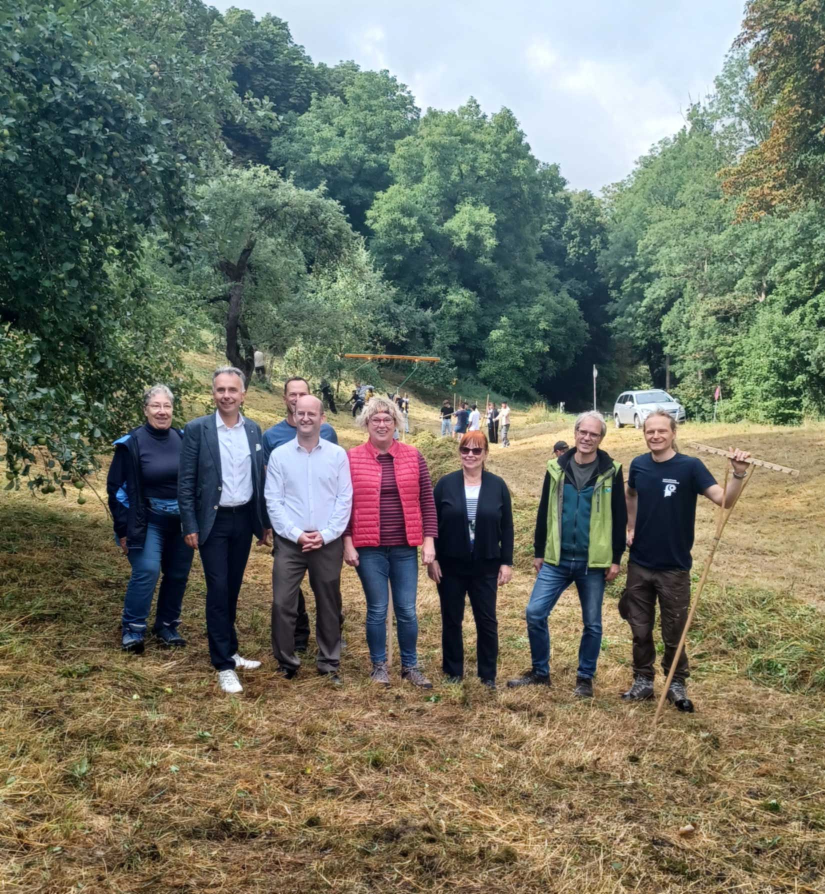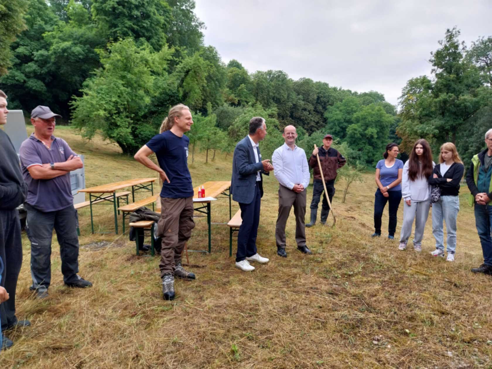 Am Donnerstag, 17. Juli 2025, stand ein neues Naturschutzprojekt in Kooperation mit den Naturpark-Rangern auf dem Programm: der Erhalt einer ökologisch wertvollen Streuobstwiese in Rothenburg (Kobolzeller Steige). Die Projektleitung seitens der Schule hatten Frau Geißler-Kraft und Frau Bühler-Saal inne.