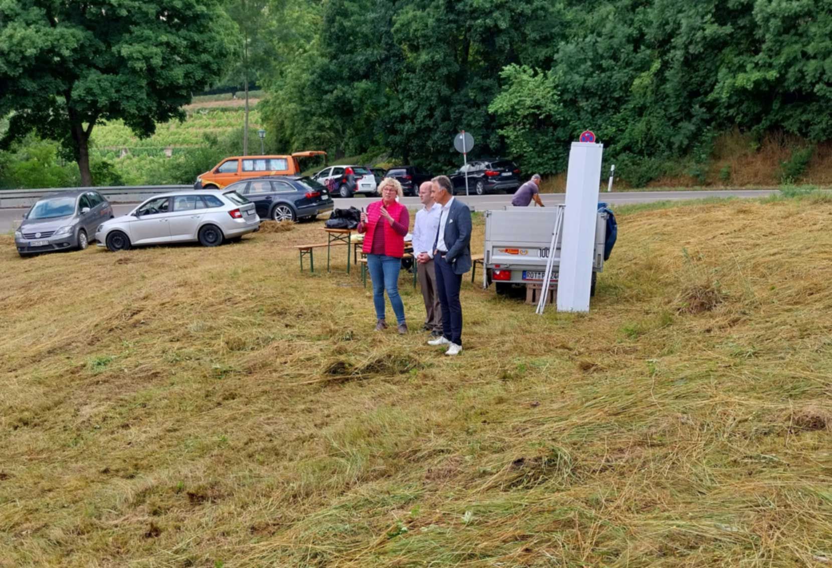 Die Berufsintegrationsklassen BIKb und d fuhren zunächst mit dem Zug zum Bahnhof nach Rothenburg, dort wurden wir abgeholt und zur Streuobstwiese an der Kobolzeller Steige gefahren. Herr Naser, Oberbürgermeister der Stadt Rothenburg, Herr Scholl, Landschaftspflegeverband Mittelfranken, Herr Mai, Sparkasse Ansbach, und Benjamin Krauthahn, stellv. Geschäftsführer Naturpark Frankenhöhe, begrüßten uns sehr herzlich. Sie alle hoben hervor, wie wichtig unser Einsatz auf der Streuobstwiese sei.