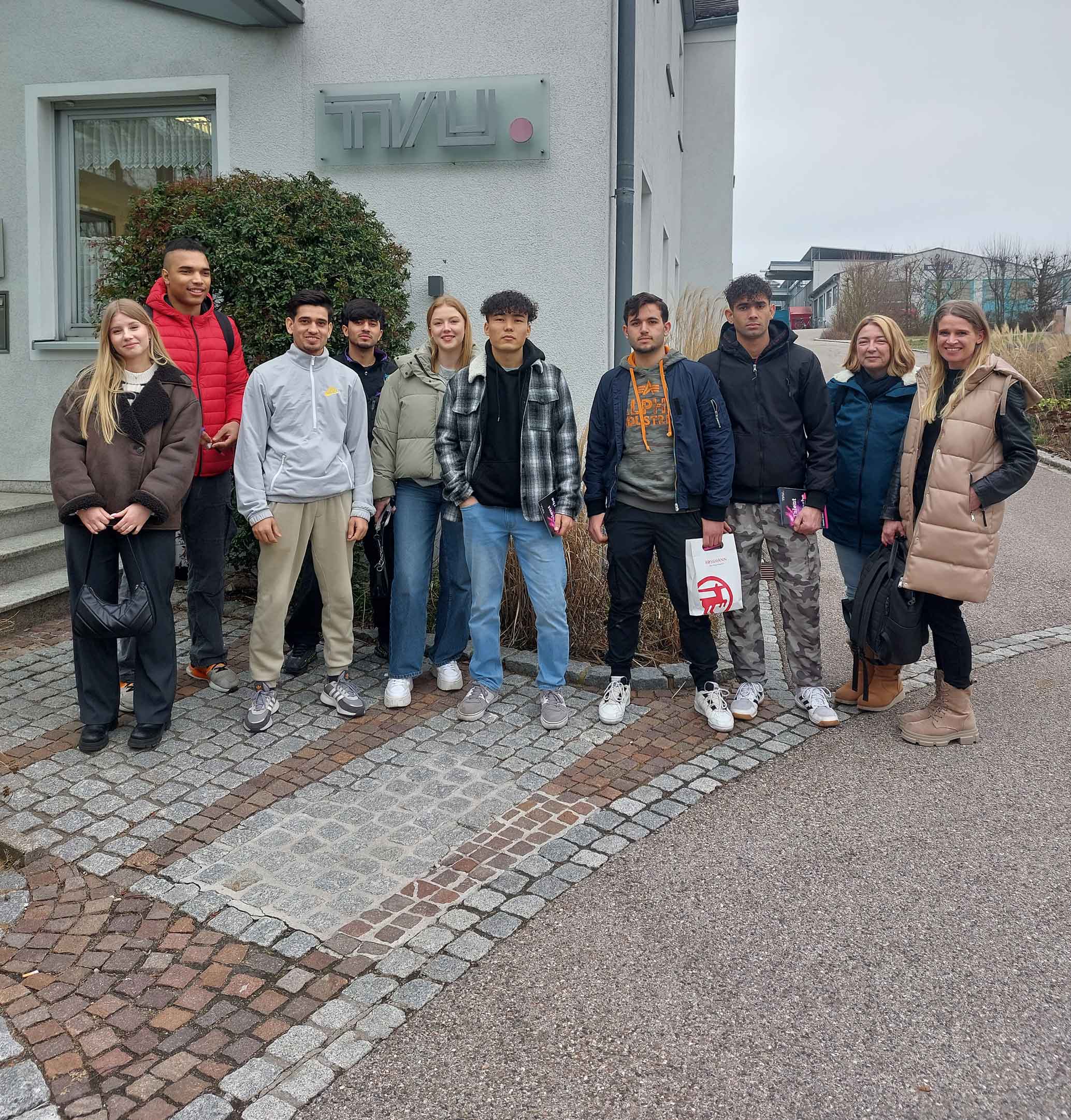 Am 28.02.2024 machte sich die Klasse BIKd zusammen mit Frau Williams und Frau Bonheger auf nach Leutershausen zur TVU Textilveredelungsunion, wo sie herzlich von Personalreferentin Frau Riegel und Herrn Christoph Hausner aus der Geschäftsleitung in Empfang genommen wurden.