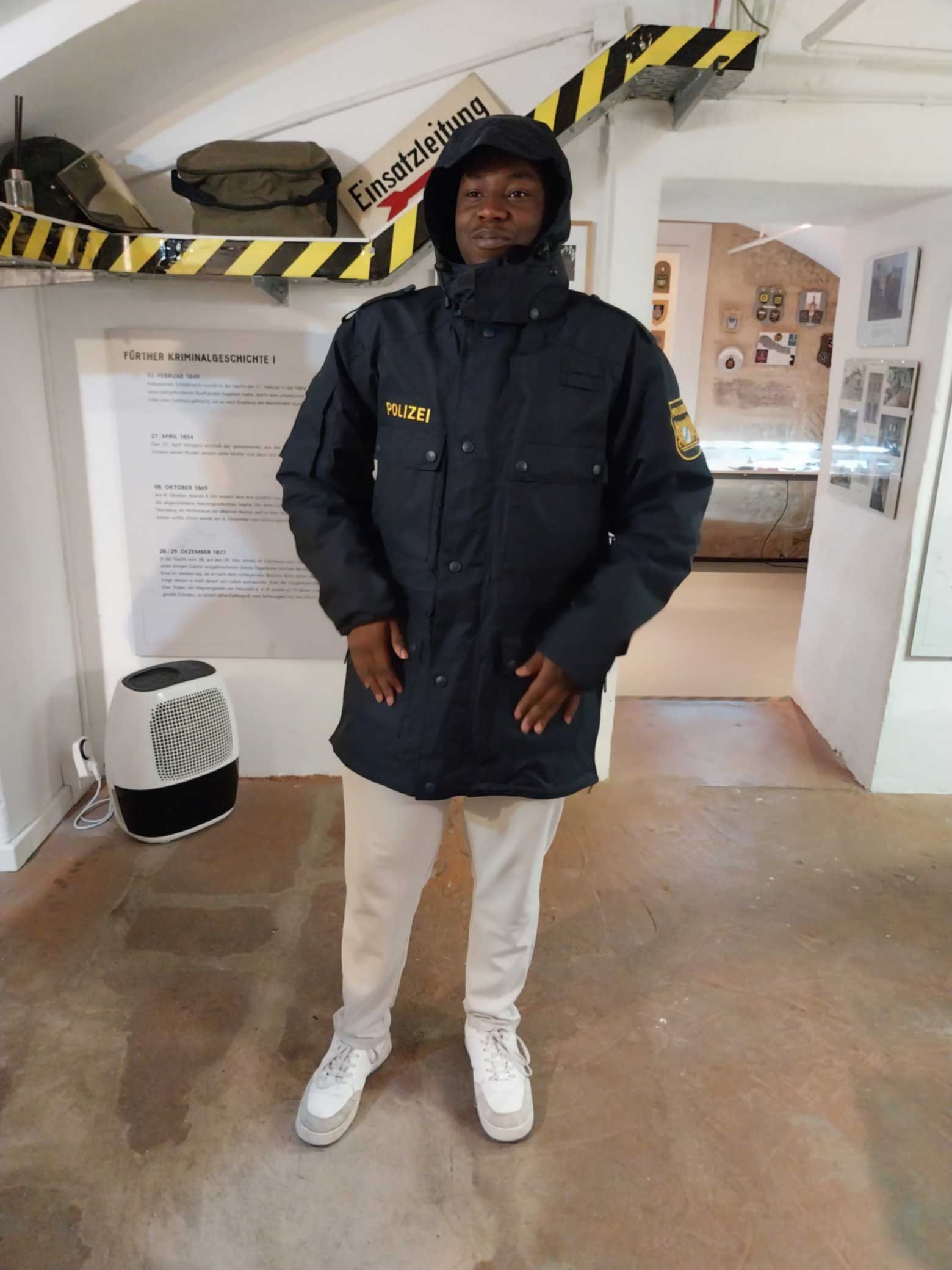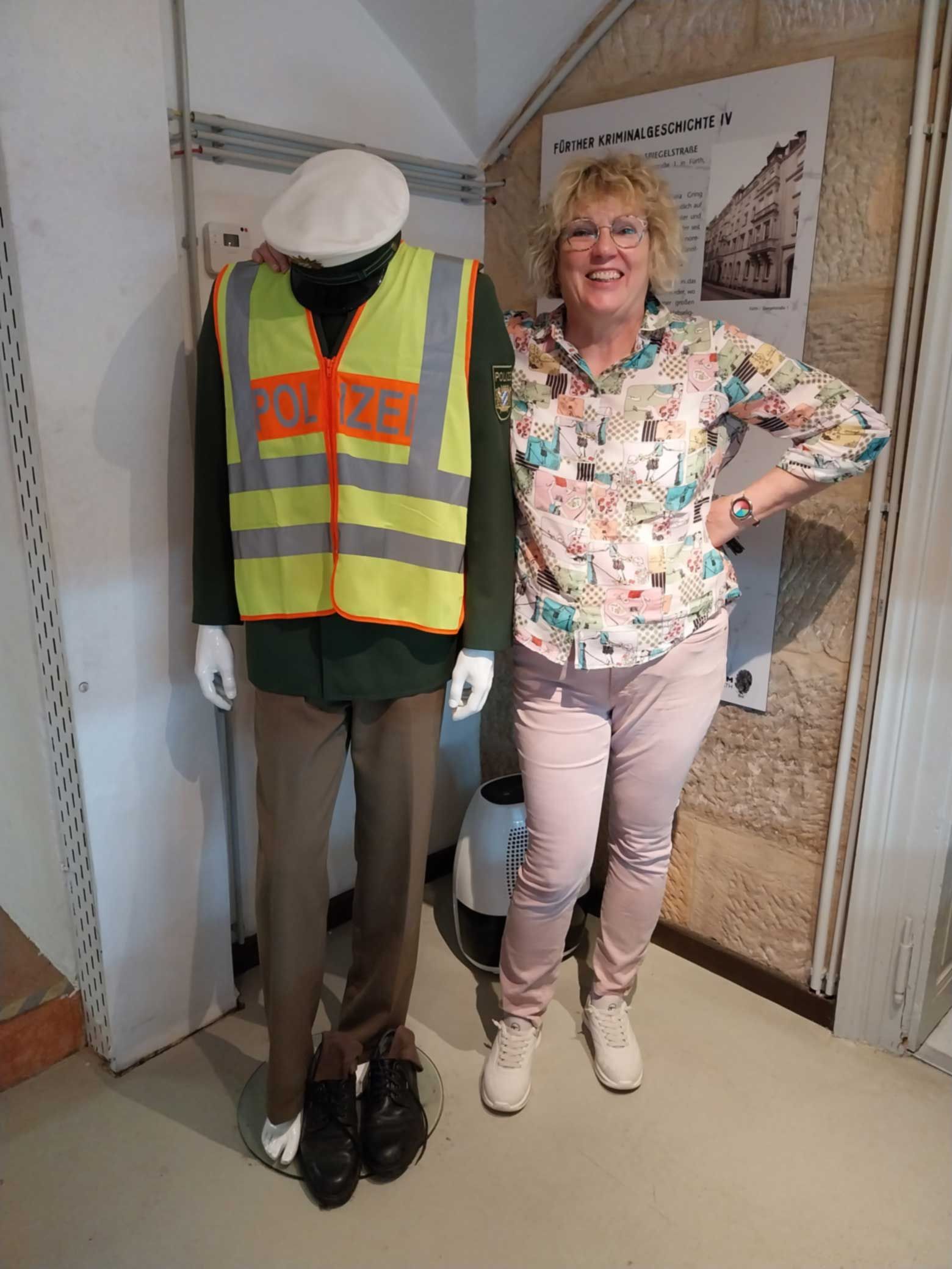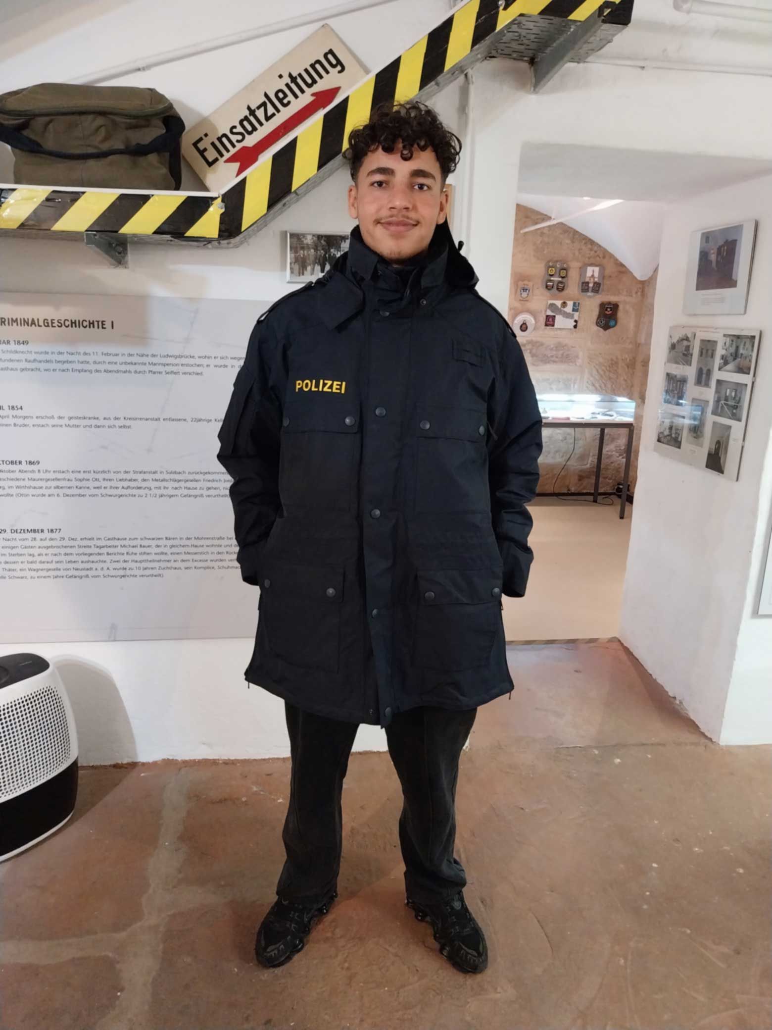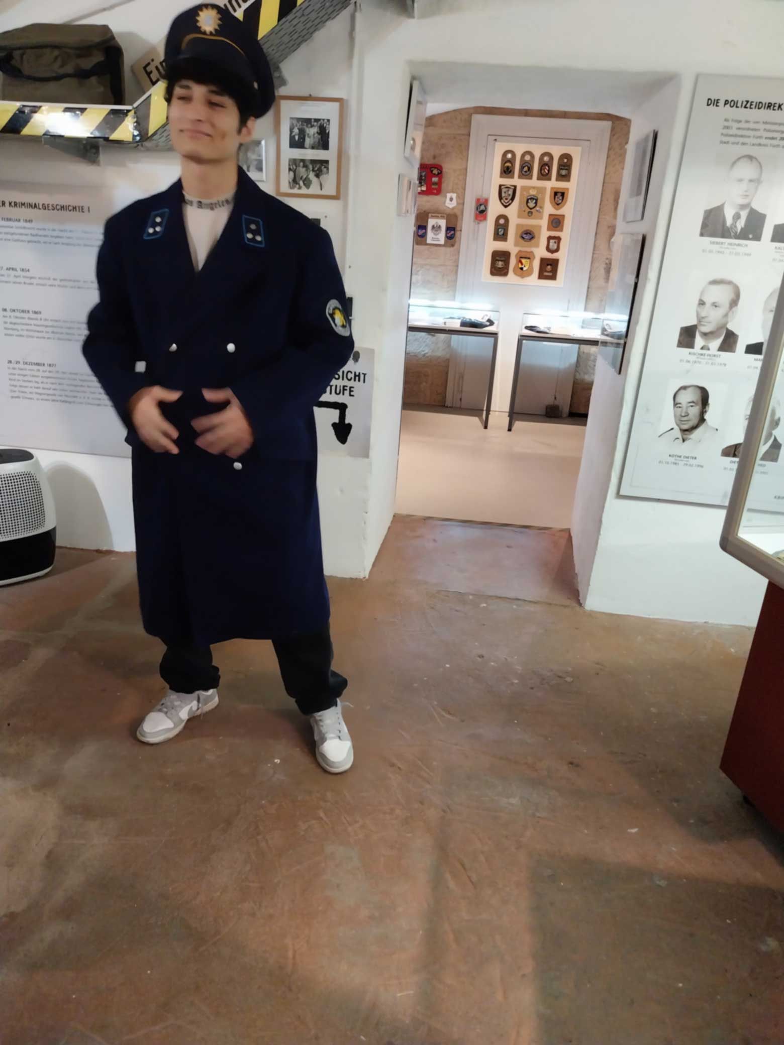 Zum Abschluss der Führung durften Freiwillige in eine historische Polizeijacke schlüpfen.