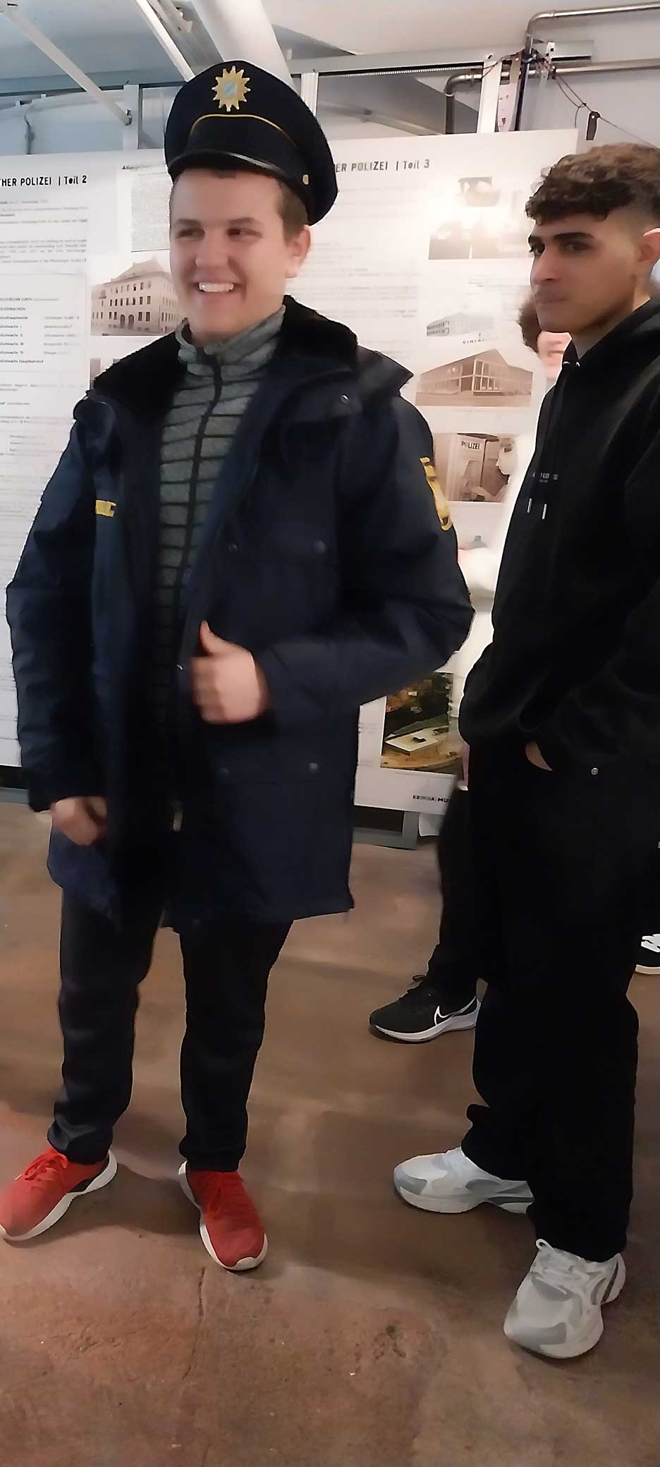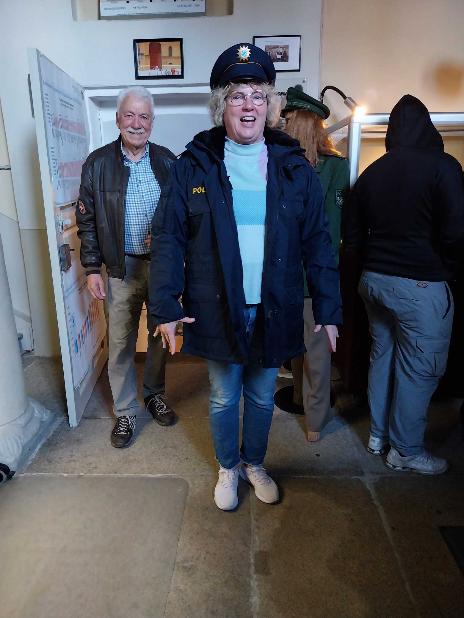 Zum Abschluss der Führung durften Freiwillige in eine Polizeiuniform schlüpfen.