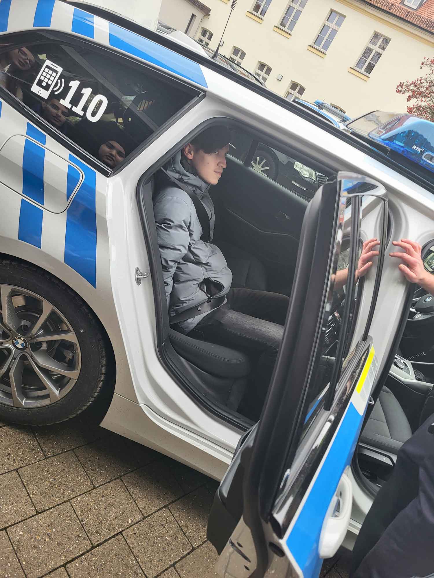 Besonders großes Interesse hatten unsere Schüler:innen an der Ausstattung eines Polizeiautos. Herr Däubler beantwortete geduldig alle Fragen, z. B. „Wie verhalte ich mich bei einer Kontrolle - was darf ich, was muss ich tun?“ „Was passiert, wenn ich zu einer Vernehmung mitgenommen werde?“