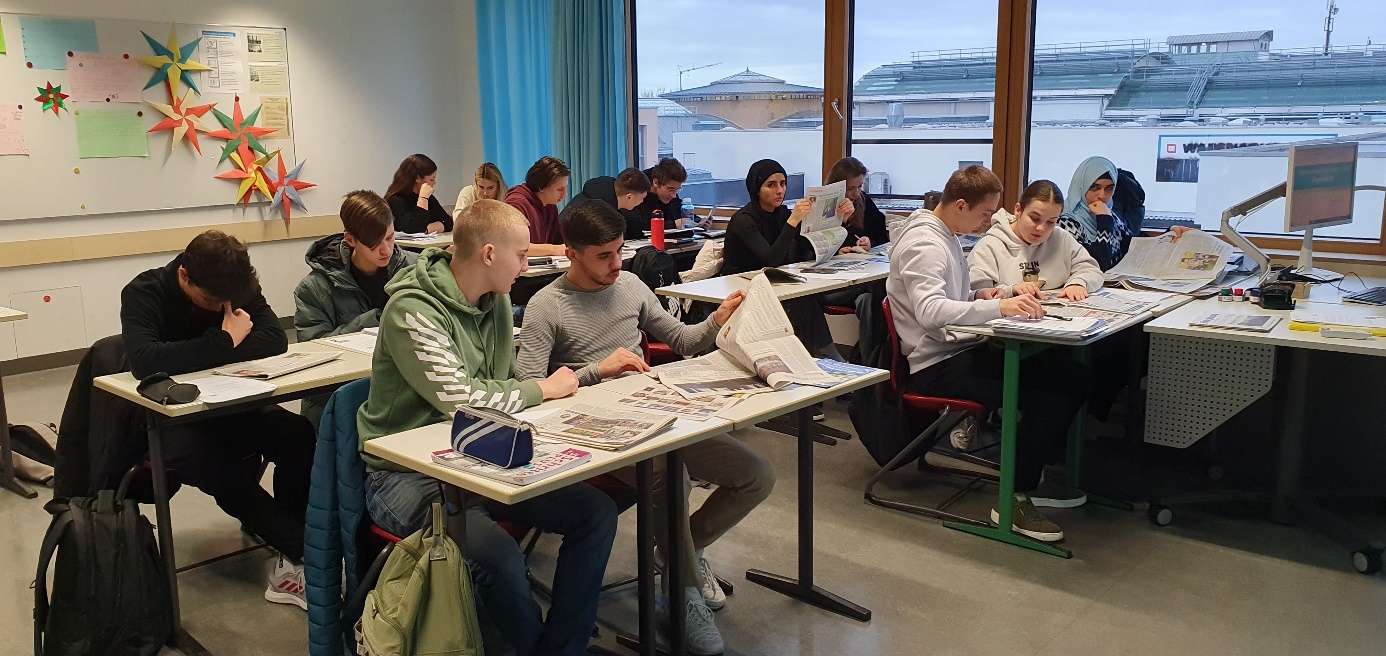 Am 22. Januar 2024 nahm die Klasse Bik a des Staatlichen Berufsschulzentrums Ansbach am Zeitungsprojekt Klasse!, einem Angebot des Verlags Nürnberger Presse, teil, in dem sie die Fränkische Landeszeitung kennenlernte. Das Projekt begann mit einer Einführung in die Sachinformationen des Mediums Zeitung, in der die Lernenden den Aufbau der Titelseite und die Merkmale journalistischer Darstellungsformen kennenlernten. Um sich die Unterschiede und Funktionen verschiedener Textsorten besser einzuprägen und später zwischen Tatsache und Meinung unterscheiden zu können, lösten sie verschiedene Aufgaben. Anschließend sah sich die Klasse ein Video zur Sicherheit im Netz an.