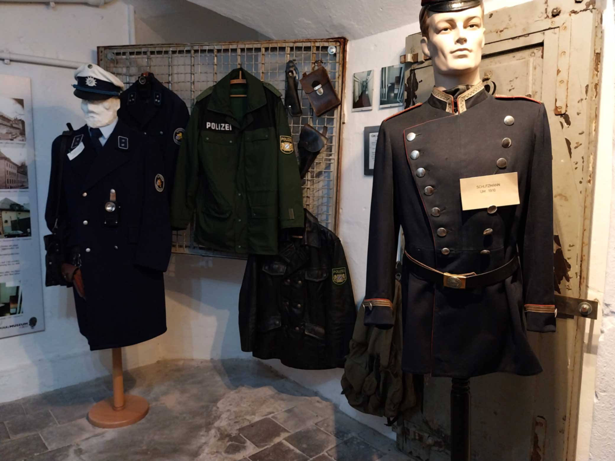 Zum Abschluss der Führung durften Freiwillige in eine historische Polizeijacke schlüpfen.