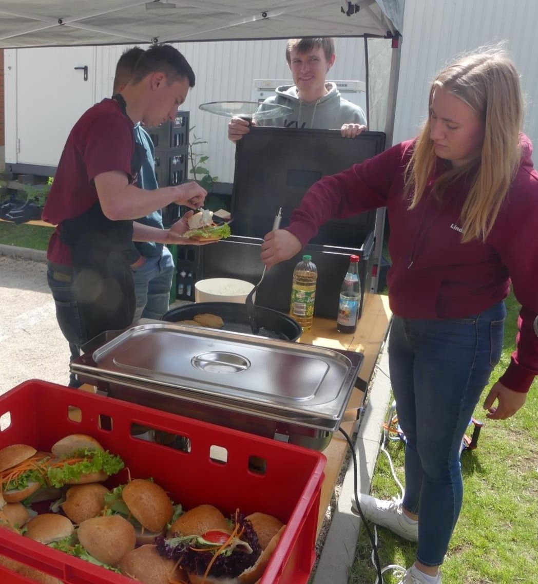 Auch für das leibliche Wohl war bestens gesorgt: Die Schülerinnen und Schüler boten selbstgemachte Falafel Burger, Kaffee und Kuchen an – die Burger auf Kichererbsenbasis fanden großen Anklang.