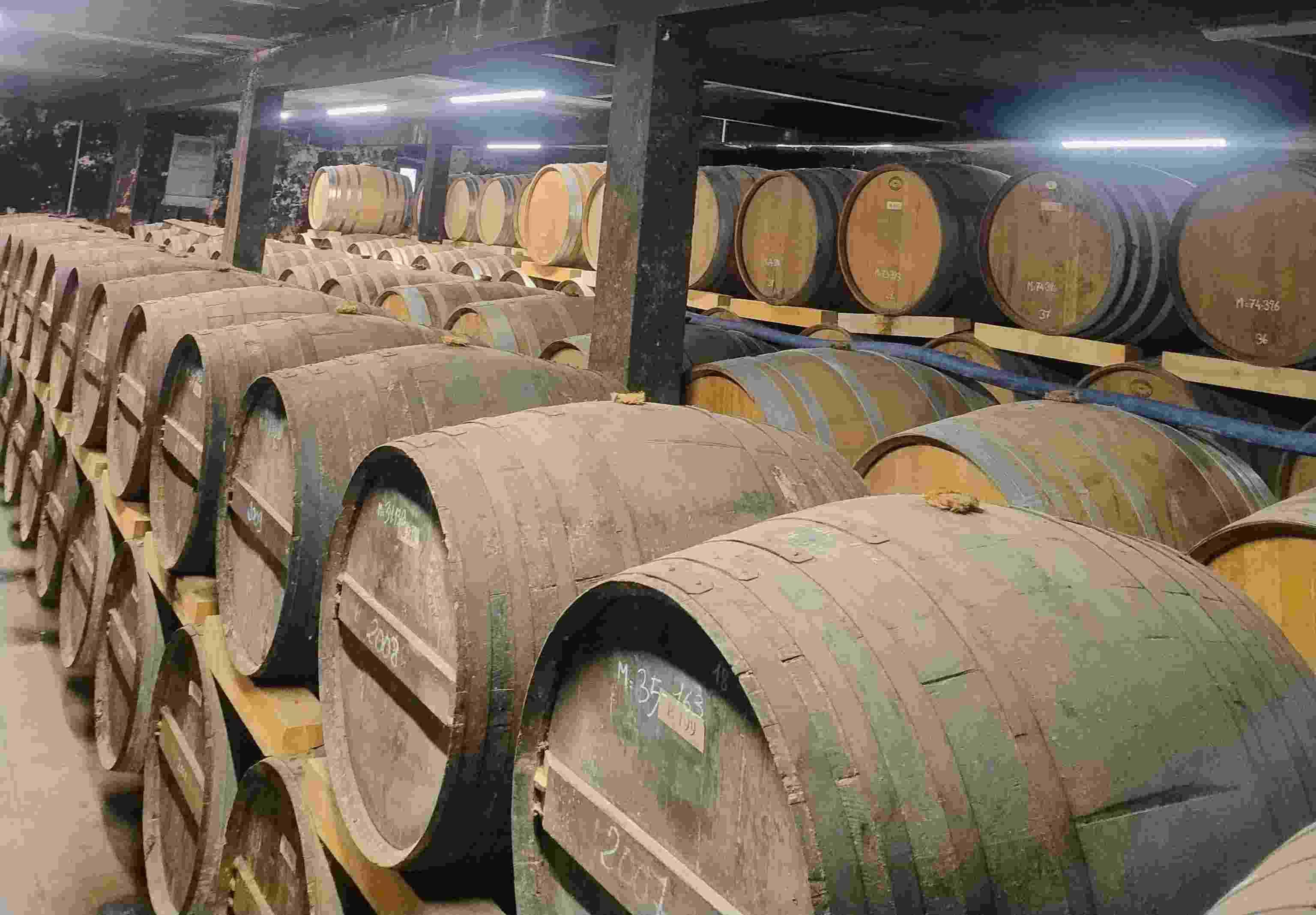 Zum Betrieb gehört auch eine Plantage mit alten Rebstöcken, die als Genetik-Sammlung dienen. Nach der Ernte werden die Trauben in einem Pressanhänger gefüllt, in dem der Saft für die Verarbeitung gepresst wird. Der Saft gelangt in Tanks, wo er für die Cognac-Produktion innerhalb von 5 Tagen zu Wein vergoren wird. Der Wein wird anschließend in der Destillerie destilliert, sodass ein Alkoholgehalt von 86 % erreicht wird. Diese aromareiche Lösung wird in Eichenfässern, die dem Cognac seine typische Farbe verleihen, für mindestens 3 Jahre gelagert. Der Cognac, der verkauft wird, besteht aus Mischungen verschieden alter Chargen, um unterschiedliche Aromen einfließen zu lassen. Die Vermarktung erfolgt unter anderem in den Hofläden der verschiedenen Landwirtschaftsschulen. Eine Verkostung des „Pineau des Charentes“ war ein gelungener Abschluss dieses Programmpunktes.