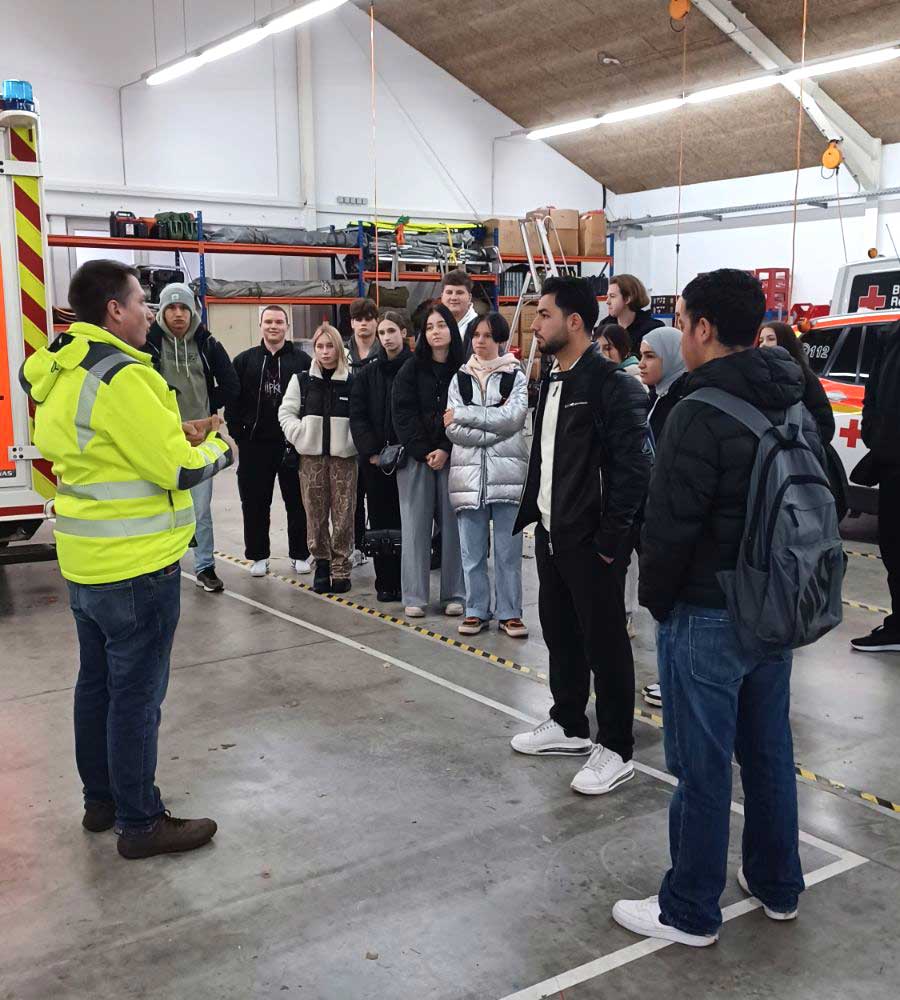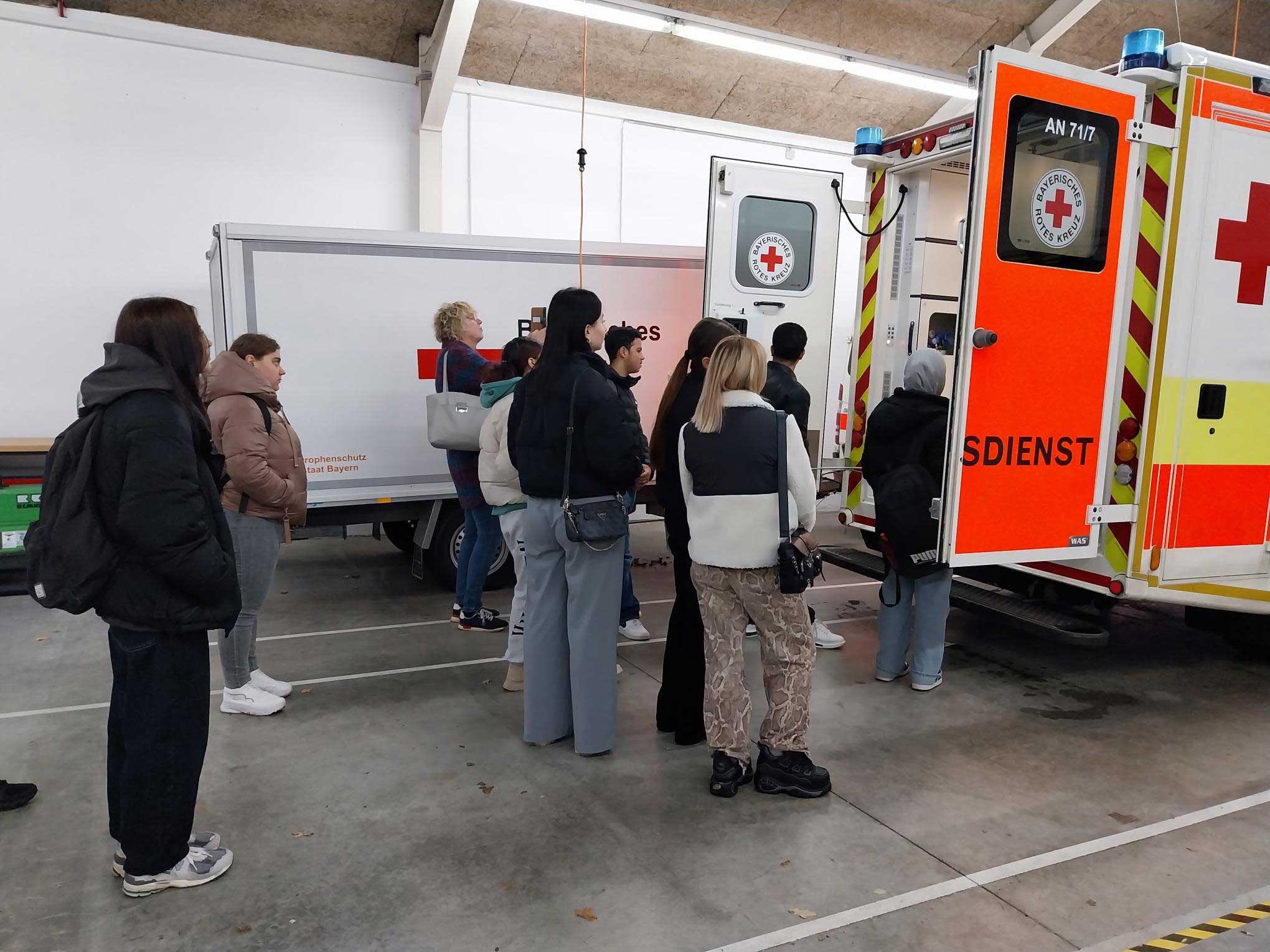 Am 8. November 2024 unternahm die Klasse BIKc zusammen mit ihren Lehrkräften, Frau Geißler-Kraft und Frau Bühler-Saal, einen Unterrichtsgang zum Roten Kreuz in Ansbach. Dort bekam die Klasse fachkundige Informationen durch den Notfallsanitäter Simon Mayr.