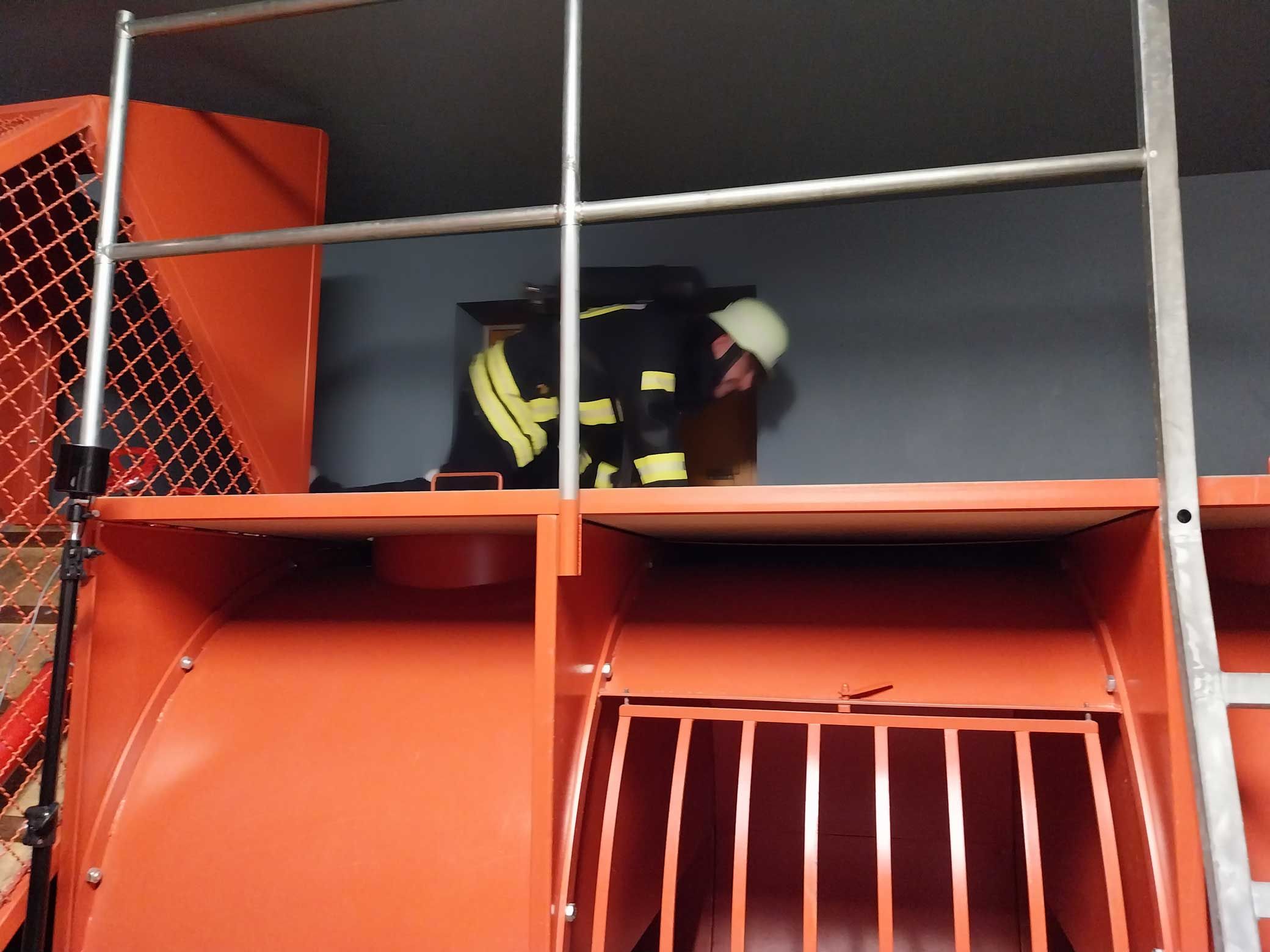 Um fit zu bleiben, müssen die Feuerwehrleute in bestimmten Abständen einen Parcours durchlaufen. Mutige Schüler und Schülerinnen der Klasse durften den Helm aufsetzen, die Jacke anziehen und die mit Atemluft gefüllte Flasche umschnallen. Derart ausgerüstet ging es durch den Parcours. „Es war sehr anstrengend, aber voll cool“, so die einhellige Meinung der Schülerin und Schüler.