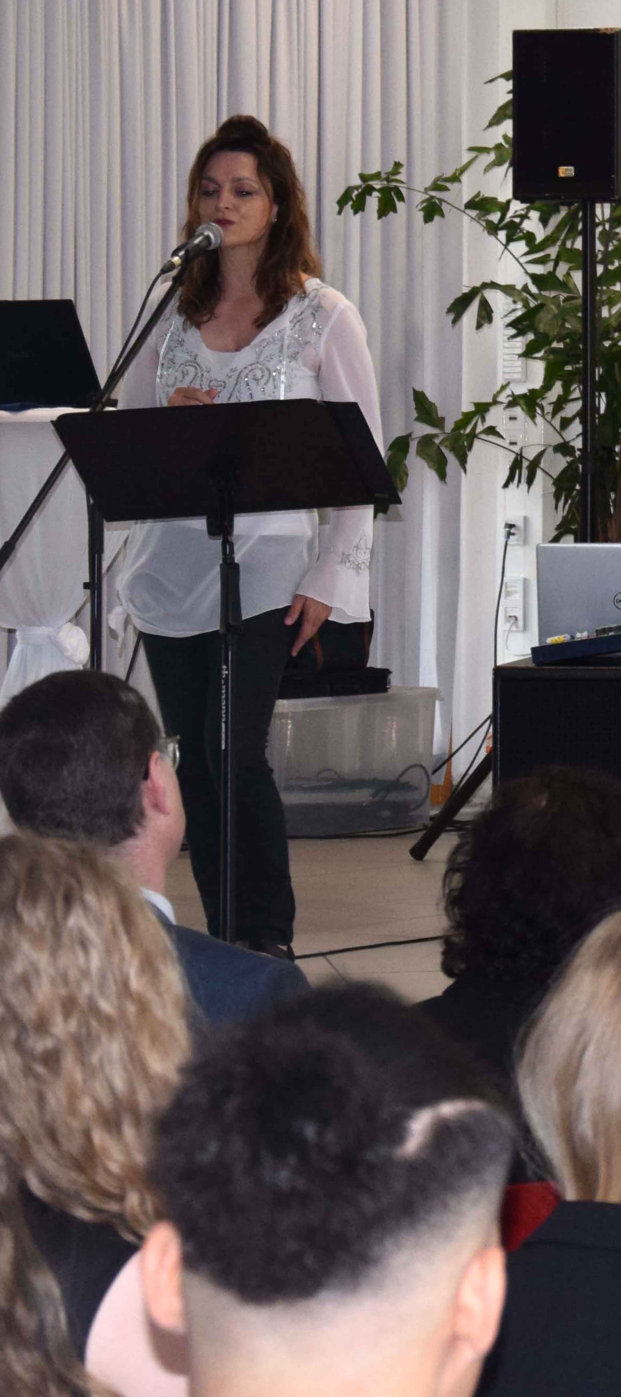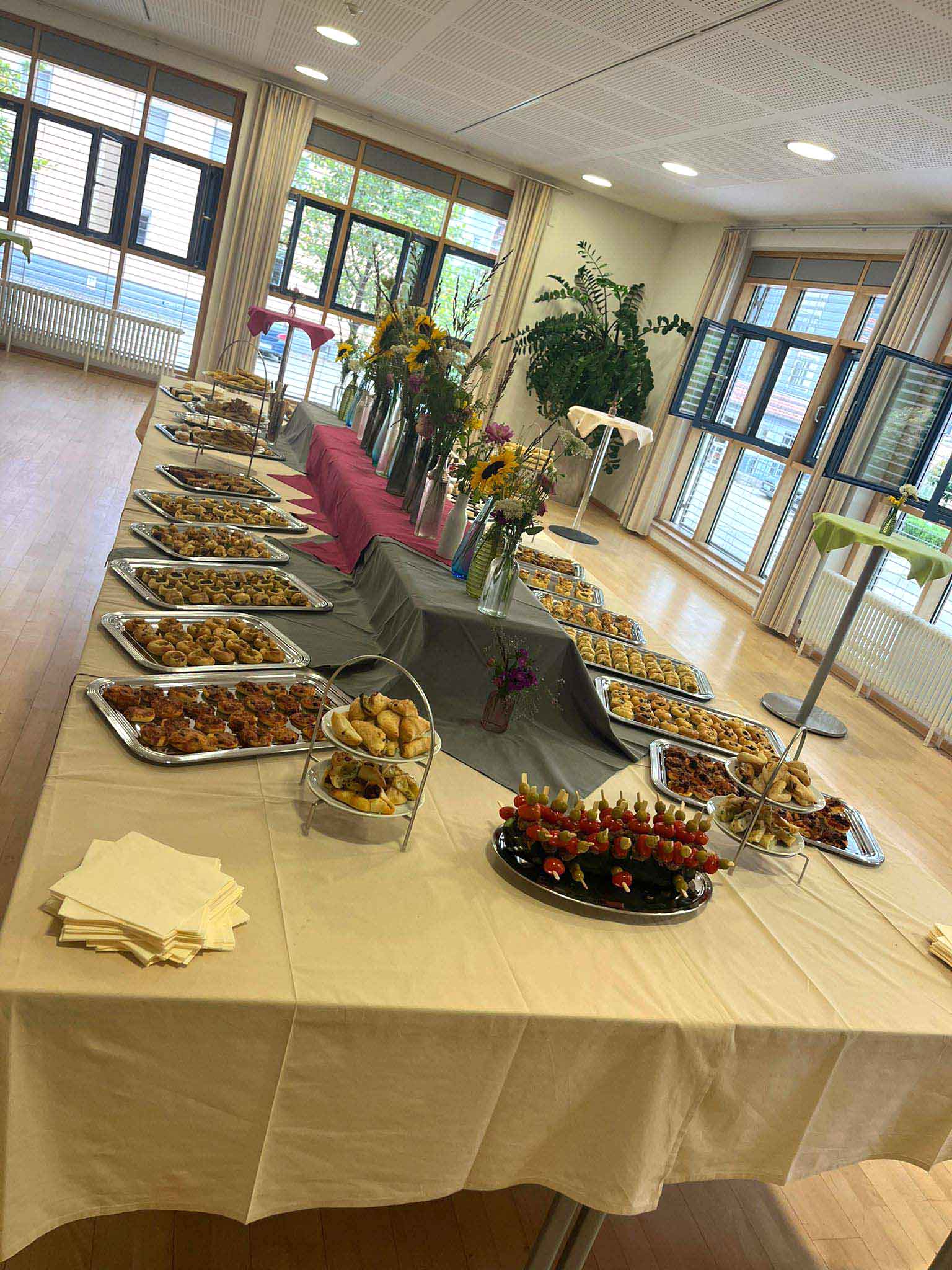 Musikalisch umrahmt wurde die Feier von Frau Perschl-Becker, die mit ihrem Gesang bei allen Anwesenden Gänsehautmomente hervorrief. Die florale Gestaltung der Aula und des Buffets hatte Frau Fischer-Huber übernommen. Für die vielen Leckereien und kulinarischen Genüsse am Buffet hatten Frau Ruff, Frau Kößer, Herr Klein, Herr Messerer, Frau Veitengruber gesorgt. Frau Bühler-Saal dankte allen sehr herzlich für ihre Unterstützung, damit diese Feier gelingen konnte. Es freute die Schulleitung und die Lehrkräfte sehr, dass sich viele Schülerinnen und Schüler für die Feier festlich gekleidet hatten!
