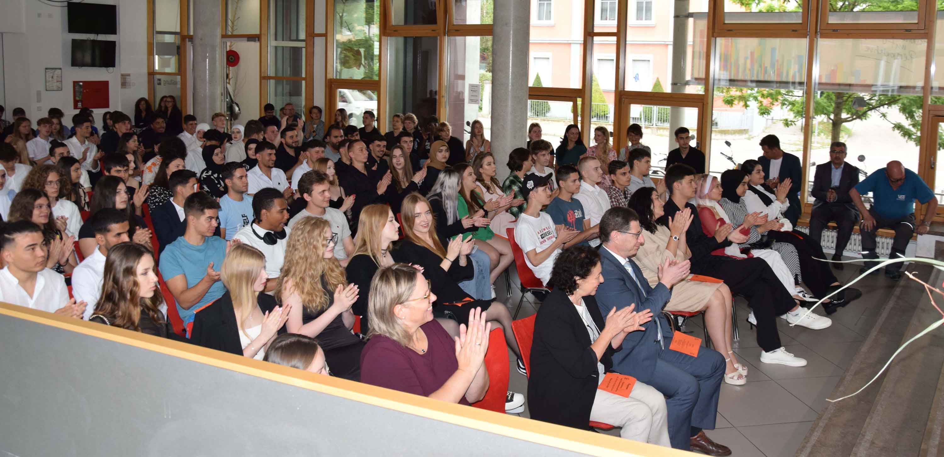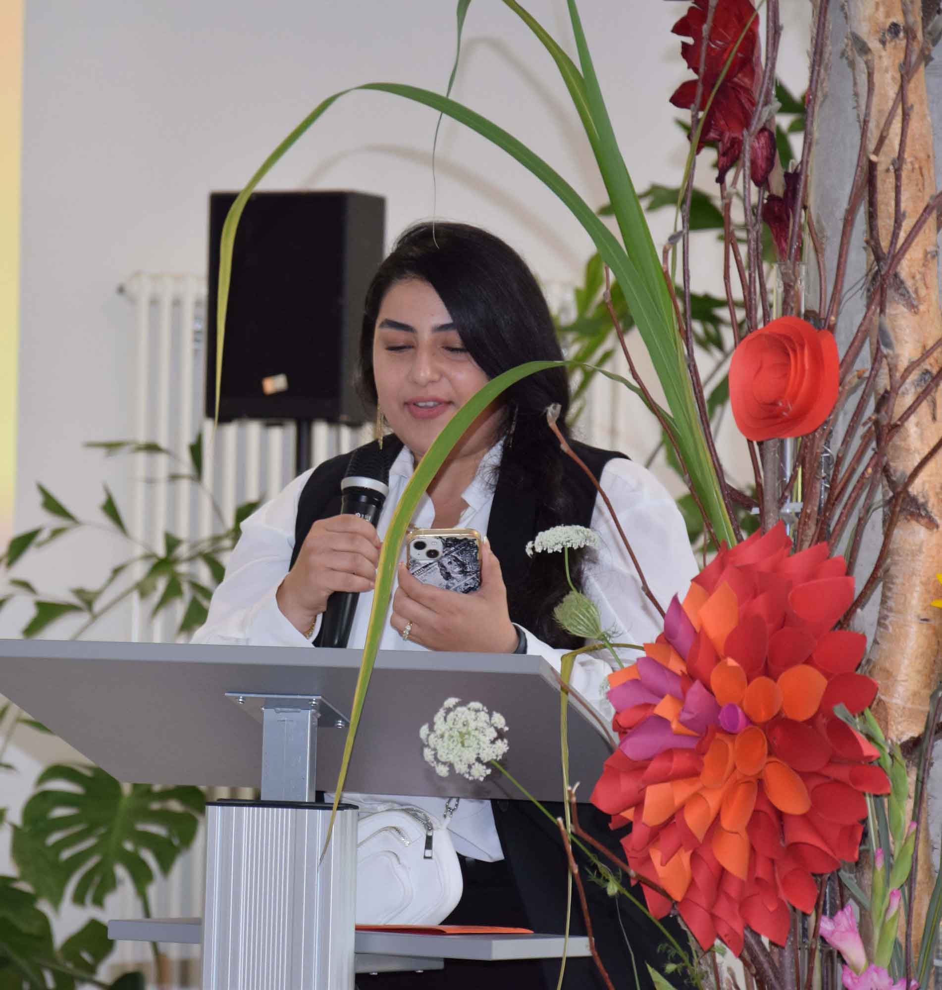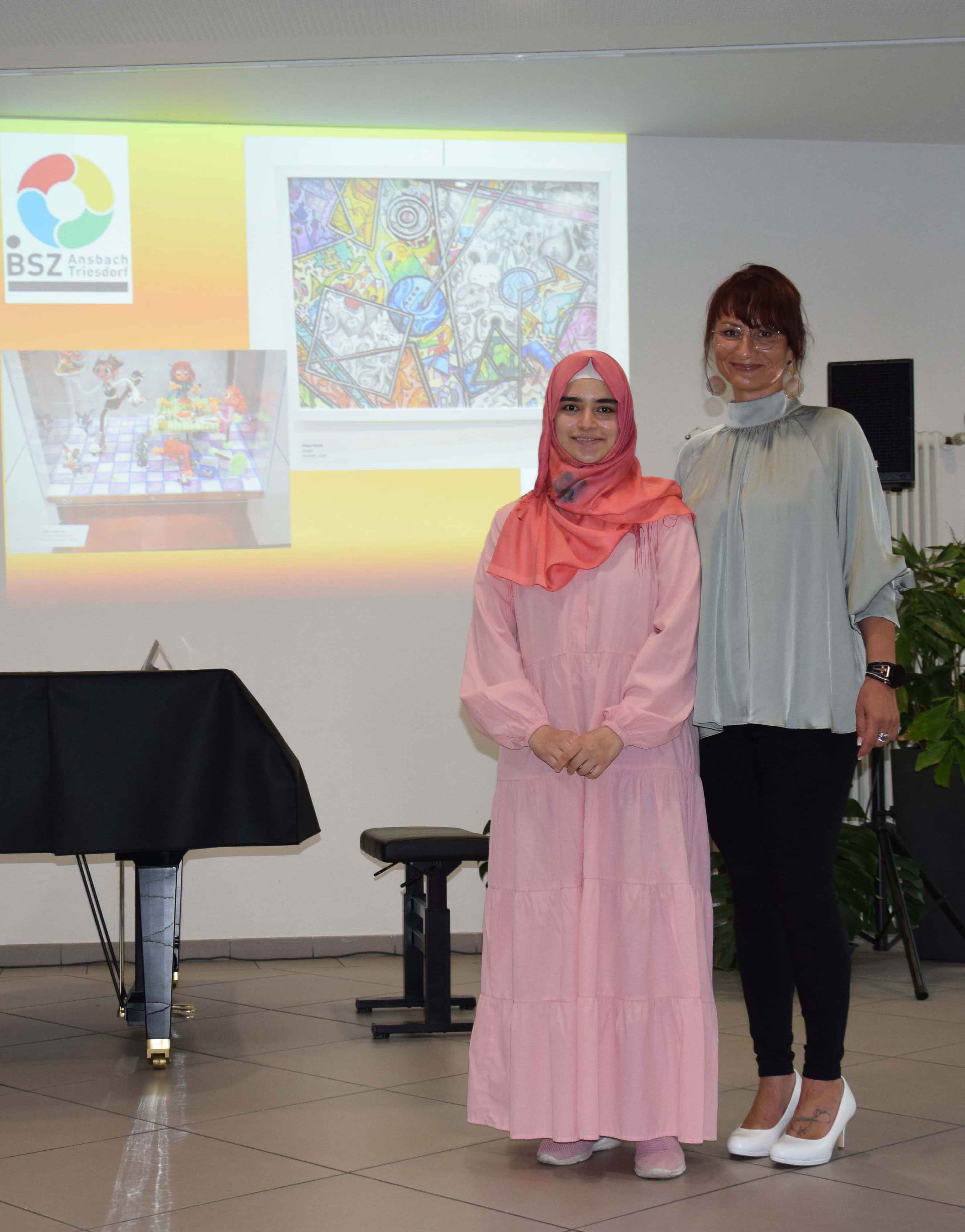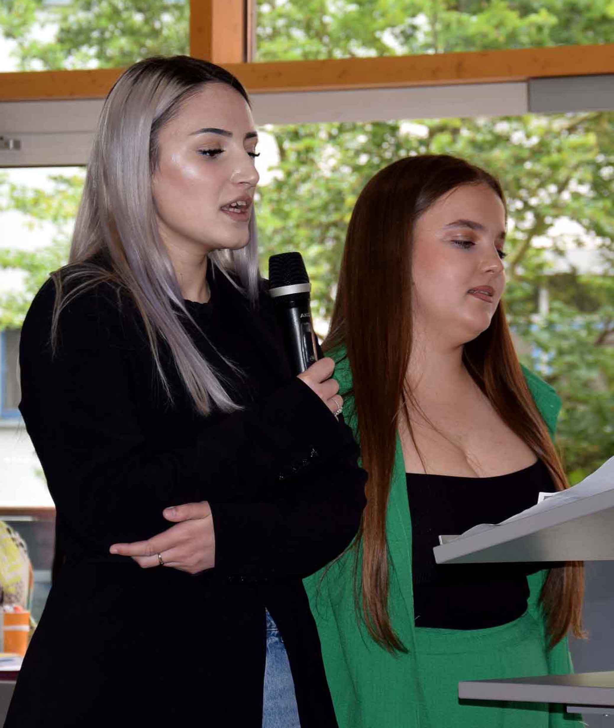 Im Rahmen der Verleihung der Zeugnisse wurden viele Schülerinnen und Schüler für ihre Leistungen geehrt. Im Frühjahr hatten die Schülerinnen und Schüler der Berufsintegrationsklassen an der DSD-I-Pro-Prüfung teilgenommen. Frau Bühler-Saal bedankte sich bei Frau Bergler und Frau Michel für die Organisation und die Vorbereitung der Klassen auf die DSD-I-Pro-Prüfung.