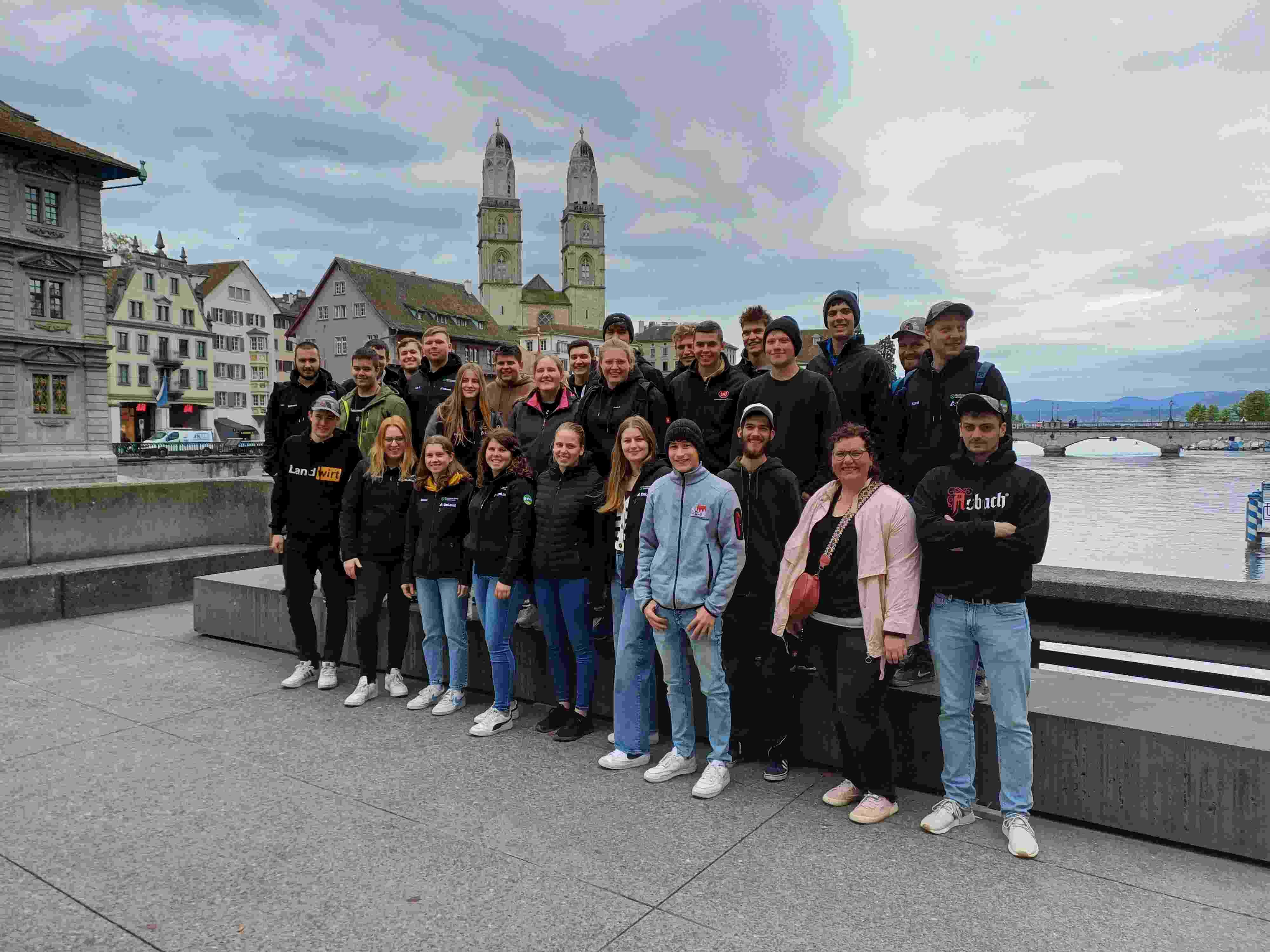 Am letzten Tag reisten wir um 8:00 Uhr nach dem Frühstück von der Jugendherberge ab und machten uns auf den Weg nach Zürich. Um 09:00 Uhr trafen wir uns dann mit zwei Stadtführern im Hauptbahnhof, wo wir dann in zwei Gruppen unterteilt wurden und eine Stadtführung bekamen. Zuerst bekamen wir Informationen über den Hauptbahnhof und die erste Zugstrecke in der Schweiz, die von Zürich nach Baden führte und 23 km lang war. Heute gibt es fast über 3000 Zugverbindungen am Hauptbahnhof in Zürich. Dann gingen wir weiter und schauten uns die Statue von Alfred Escher an, der in Zürich geboren wurde und eine der wichtigsten Personen der Stadt war. Er hat die ETH gebaut, sowie die Bank und sorgte für eine Altersversicherung für Gastarbeiter. Von dort aus liefen wir die Bahnhofstraße entlang, früher war diese ein stinkender, stehender Froschgraben, da dieser außerhalb der Stadtmauer lag. Heute ist die Bahnhofstraße eine weltbekannte Einkaufsstraße und zentraler Punkt Zürichs. Direkt an der Bahnhofstraße steht eine Statue von Pestalozzi. Er war ein sehr bekannter Bauer, da er damals schon, im 19. Jahrhundert, besondere Dünger einsetze und seine Tiere Weidegang genießen durften, was für die damalige Zeit sehr ungewöhnlich war. Er setzte sich auch dafür ein, dass Mädchen zur Schule gehen durften und war gut befreundet mit Goethe und anderen sehr bekannten Menschen dieser Zeit. Danach gingen wir weiter zum Lindenhof. Dies ist ein kleiner Hügel direkt in Zürich, mit einer schön ruhigen Atmosphäre durch die Lindenbäume und toller Aussicht auf die Stadt und die Berge. Anschließend lernten wir, dass Zürich in der Römerzeit TVRICVM (Turikum) hieß und die Stadt evangelisch ist. Als nächstes liefen wir dann an der Sankt Peter Kirche vorbei, welche das größte Ziffernblatt der Kirchturmuhr in Europa besitzt. Das Fraumünster, das Ludwig der Deutsche als Kloster für seine zwei Töchter bauen hat lassen, begutachteten wir von außen und liefen danach durch die Altstadt zum Großmünster, wo unsere Stadtführung um 10:30 Uhr endete. Die Stadtführung gefiel uns allen sehr gut. Bis 14:00 Uhr hatten wir dann Zeit zur freien Verfügung in der Stadt und fuhren danach mit dem Bus wieder Richtung Heimat. Am Abend waren wir zum Abschluss beim gemeinsamen Abendessen im Gasthof zur Tenne in Bernau bei Feuchtwangen. Gegen 20 Uhr kamen wir wieder in Triesdorf an. Die Lehrfahrt hat uns allen sehr gut gefallen und wir hatten eine lehrreiche und schöne gemeinsame Zeit.